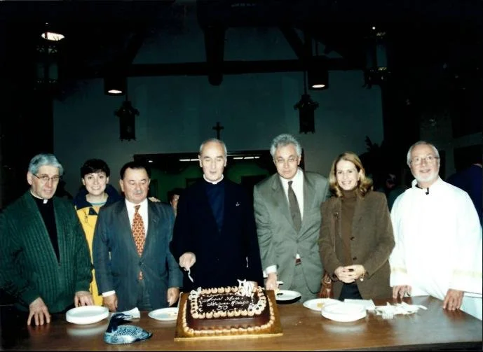 Toronto 2001, foto ricordo del 50.mo anniversario di sacerdozio di monsignor Ridolfi. Riconoscibli nella foto padre Guglielmo Corbo, monsignor Inverici, Odoardo di Santo e Maria Augimeri