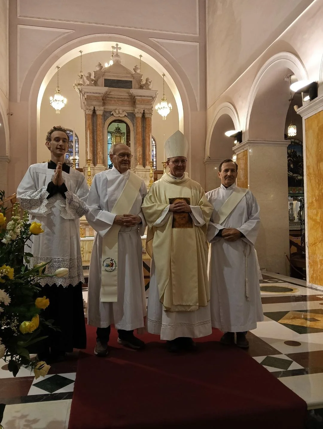 Il vescovo della Diocesi di St. Augustine (Florida), Erik Pohlmeier con alcuni suoi sacerdoti, in pellegrinaggio giubilare al Santuario del Volto Santo di Manoppello (21 gennaio 2025)