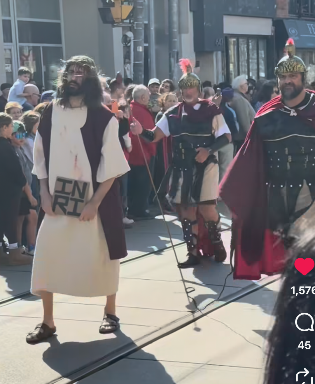 Come per magia nel quartiere l’atmosfera è diventata surreale: per qualche ora le auto e il rumore sono stati sostituiti dalle preghiere e dai canti dei fedeli, dalle statue e dalla rappresentazione del percorso doloroso di Gesù Cristo che si avvia alla crocifissione sul Golgata.